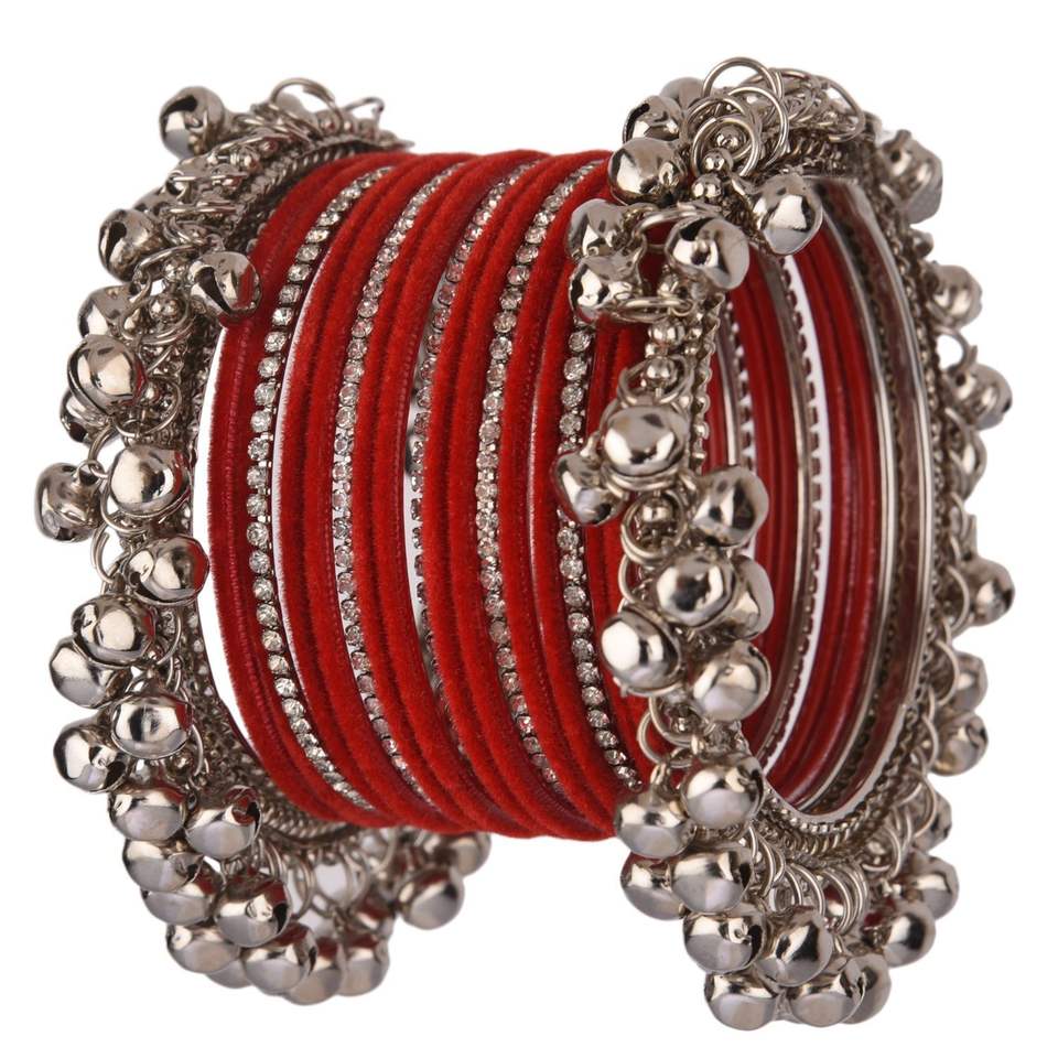 Feature:Embellished with plain velvet bangles and CZ studded broad bangles