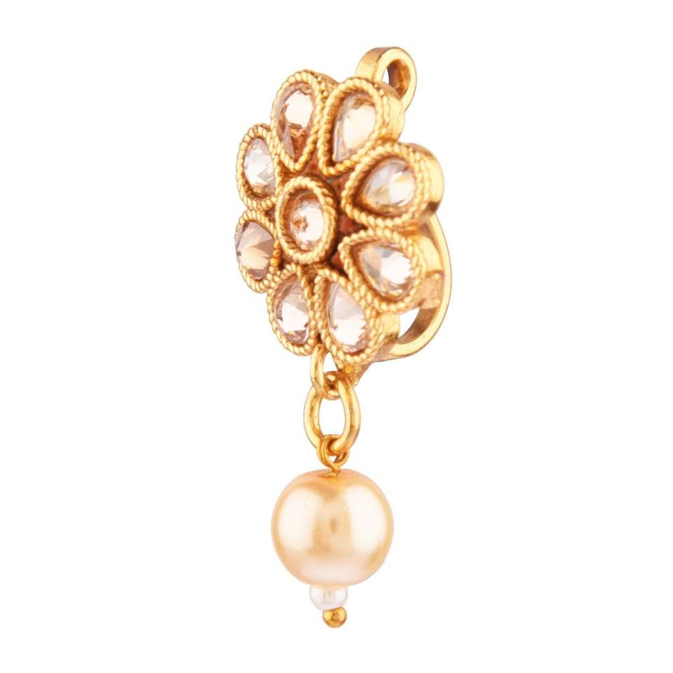 Indian Jewellery Nose Ring Faux Pearl Floral Drop Rhinestone Crystal Bridal Wedding Nose Stud Pin Jewellery for Women, White