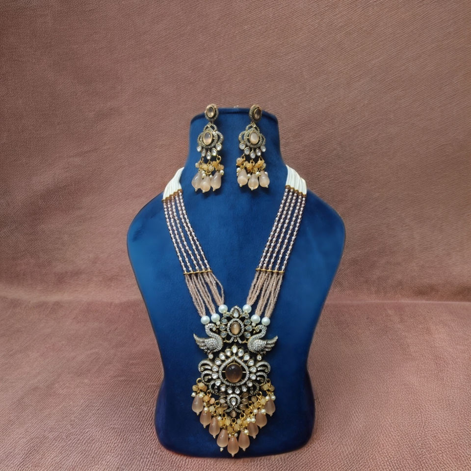Indian Jewellery Victorian Plated Designer Necklace Set with Earrings Bridal Jewelry for Wedding & Party Celebration