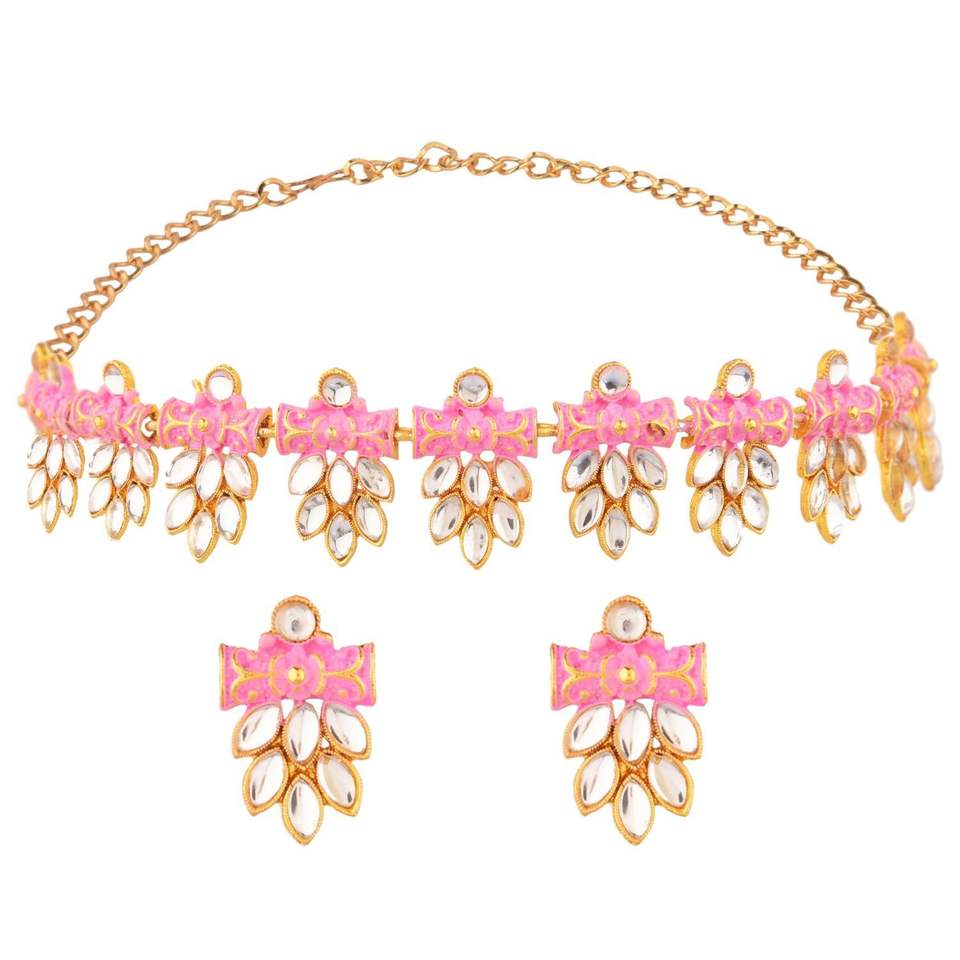 Design:enamel meenakari choker necklace set