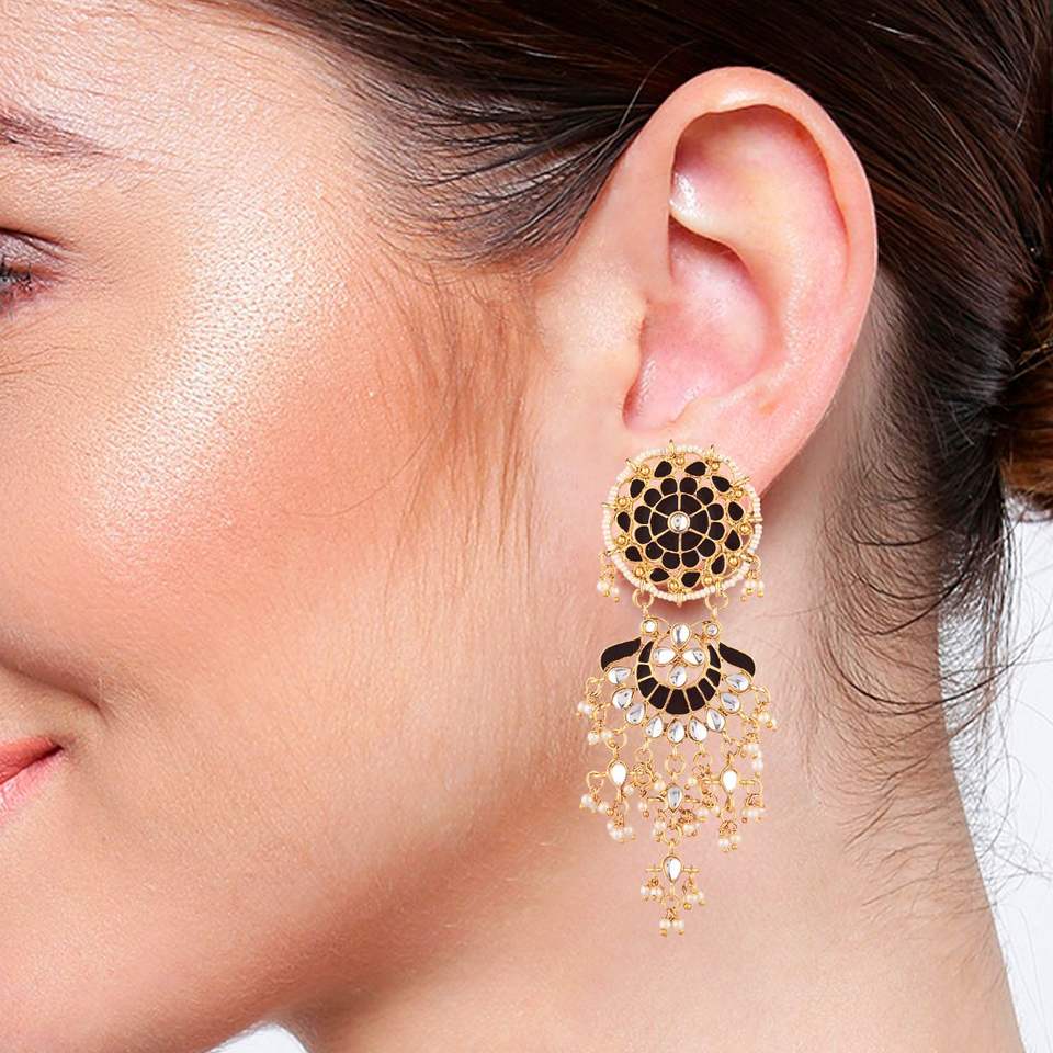 Indian Jewelry Bollywood Antique Beaded Crystal Kundan Floral Big Dangle Chandelier Earrings Set