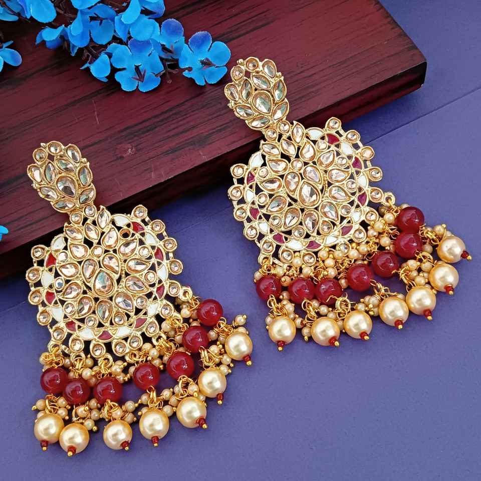 Indian Jewelry Bollywood Antique Faux Pearl Crystal Kundan Big Dangle Chandelier Earrings Set