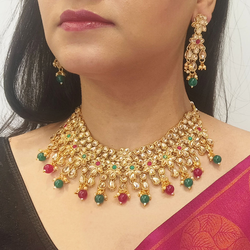 Indian Jewelry Choker Necklace Maang Tikka Earrings Bollywood Wedding Crystal Kundan Necklace Earrings Head Chain Set