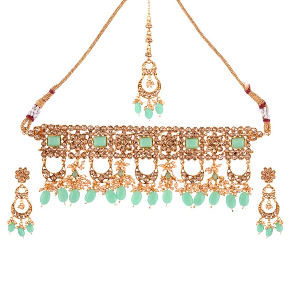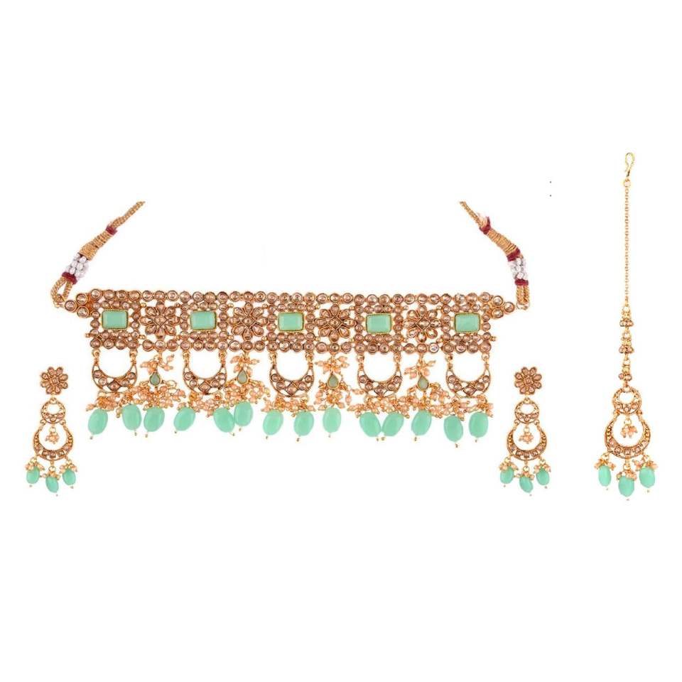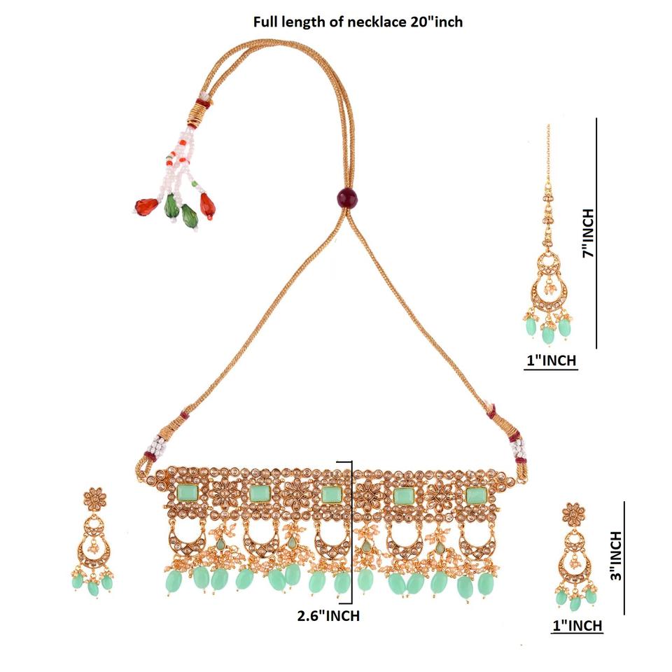 Dimention:Necklace LxW: 16"x2.6",Earrings LxW: 3"x1",Mangtikka LxW: 7"x1"