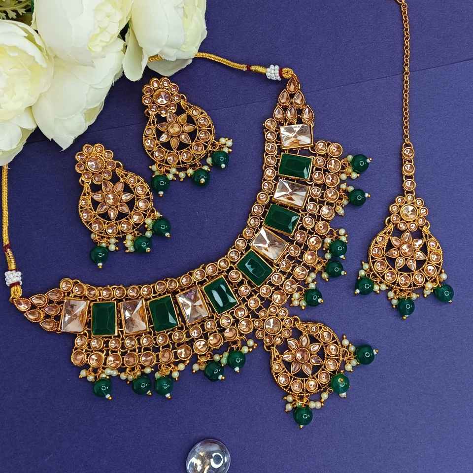 Set Content:1 Necklace 1 Pair of Earrings And 1 Maang Tikka