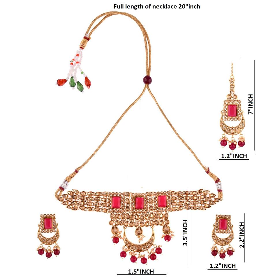 Dimention:Necklace LxW:16x3,Earrings LxW:2.5x1.4,Mangtikka LxW:6x1.2