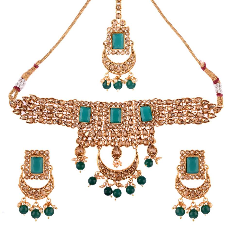 Set Content:1 Necklace 1 Pair of Earrings And 1 Maang Tikka