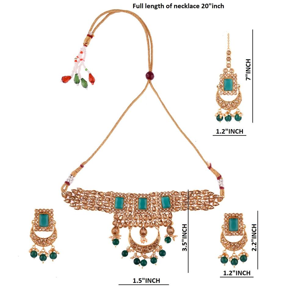 Dimention:Necklace LxW:16x3,Earrings LxW:2.5x1.4,Mangtikka LxW:6x1.2
