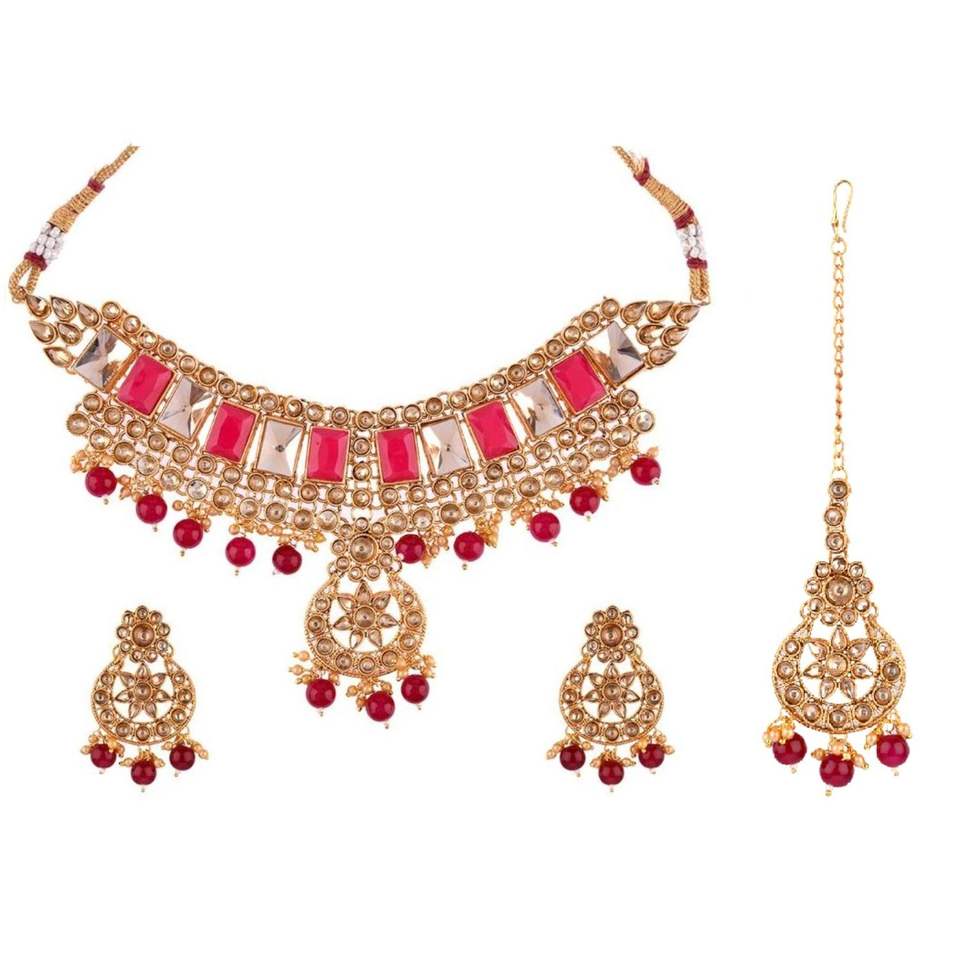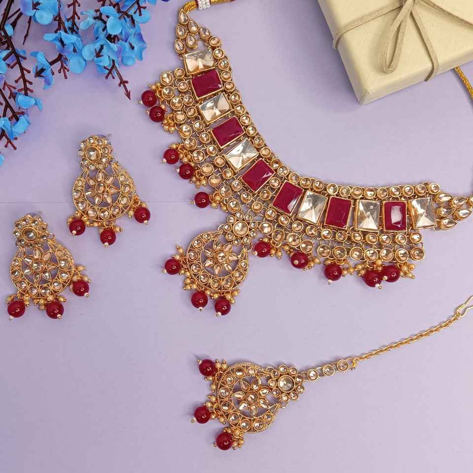 Set Content:1 Necklace 1 Pair of Earrings And 1 Maang Tikka