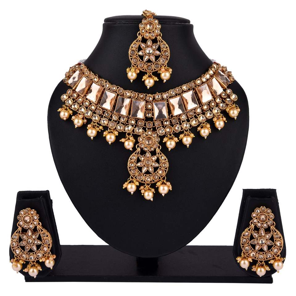 Set Content:1 Necklace 1 Pair of Earrings And 1 Maang Tikka
