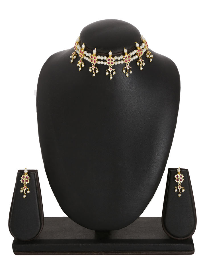 Design:gold plated pearl choker necklace set