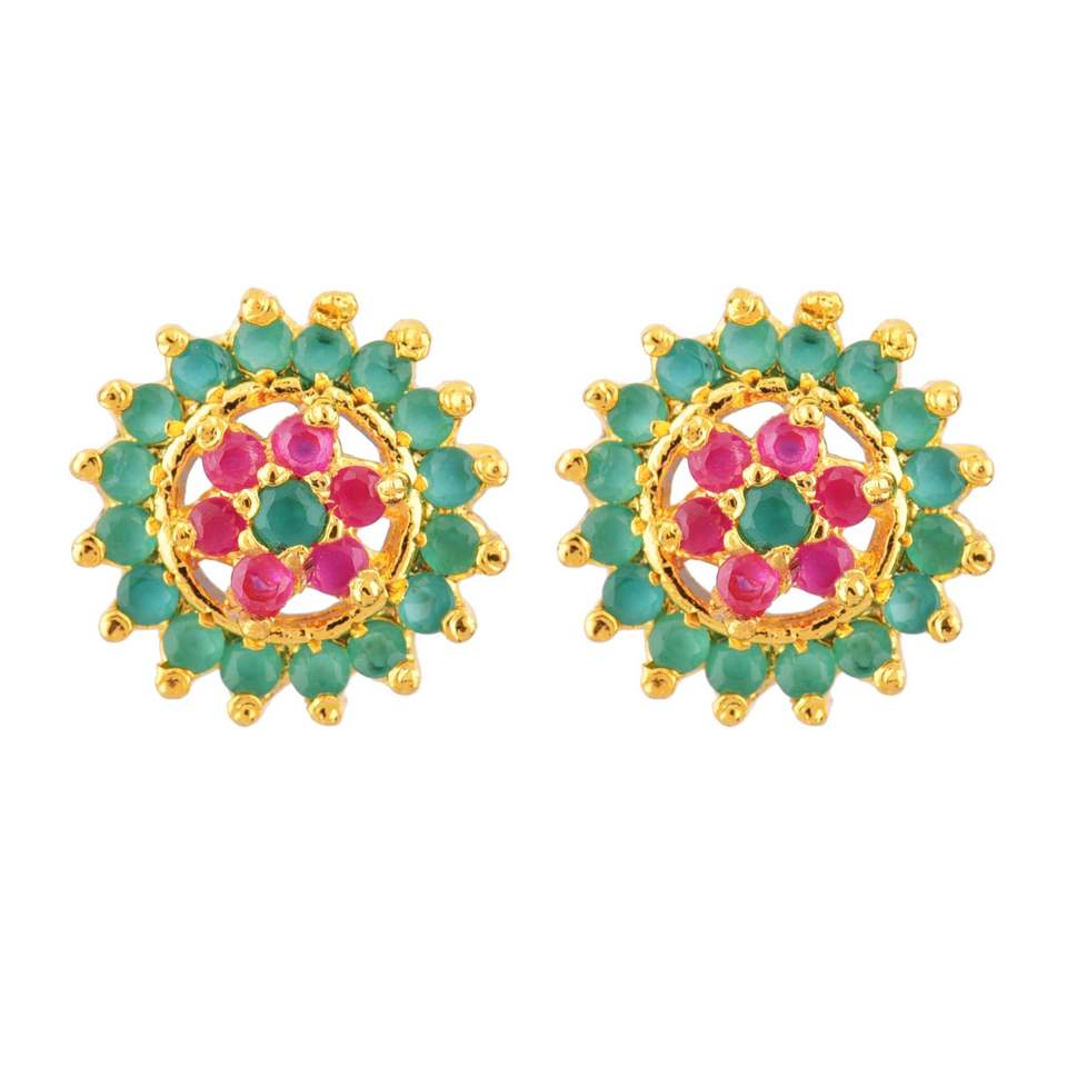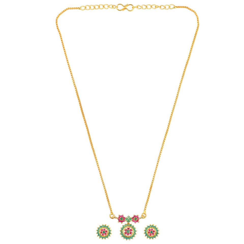 Indian Jewelry Cubic Zirconia CZ Round Pendant Chain Necklace Earrings Jewelry Set Gift for Women Girls