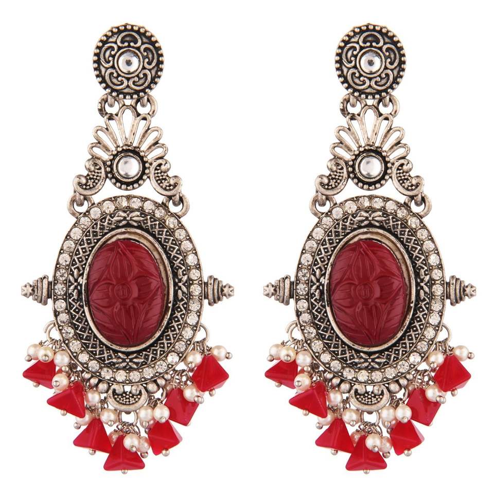 Design:Antique handmade boho vintage oxidized silver earrings set