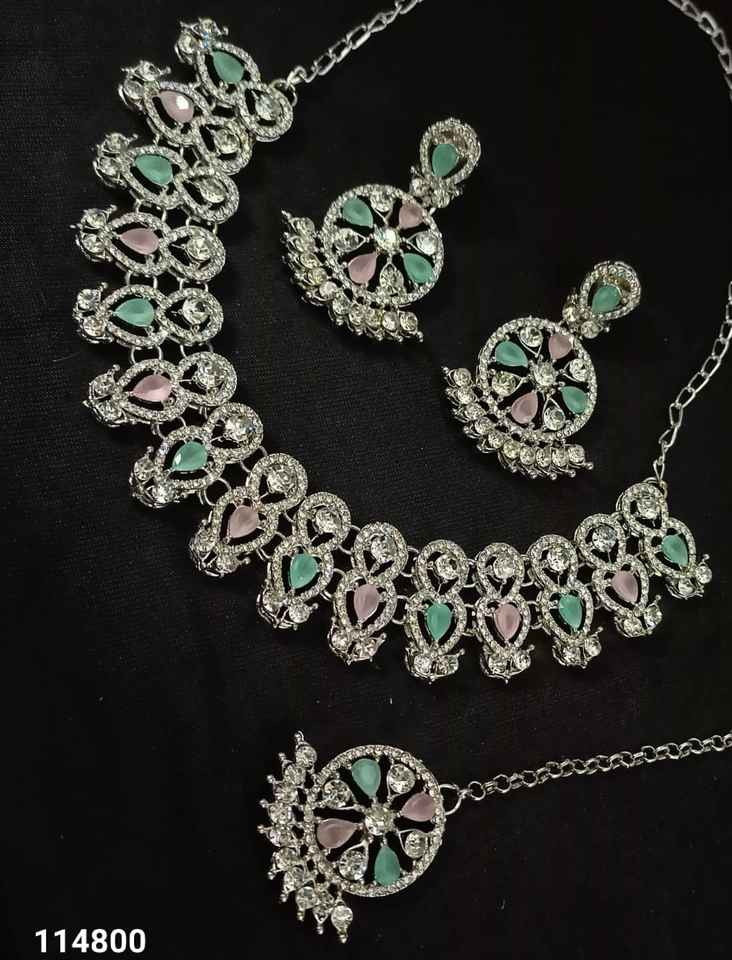 Indian Jewelry Flower Shape Gold Plated Traditional Motipearl Kundan Studded Choker Necklace Earring Mangtika Jewellery Set