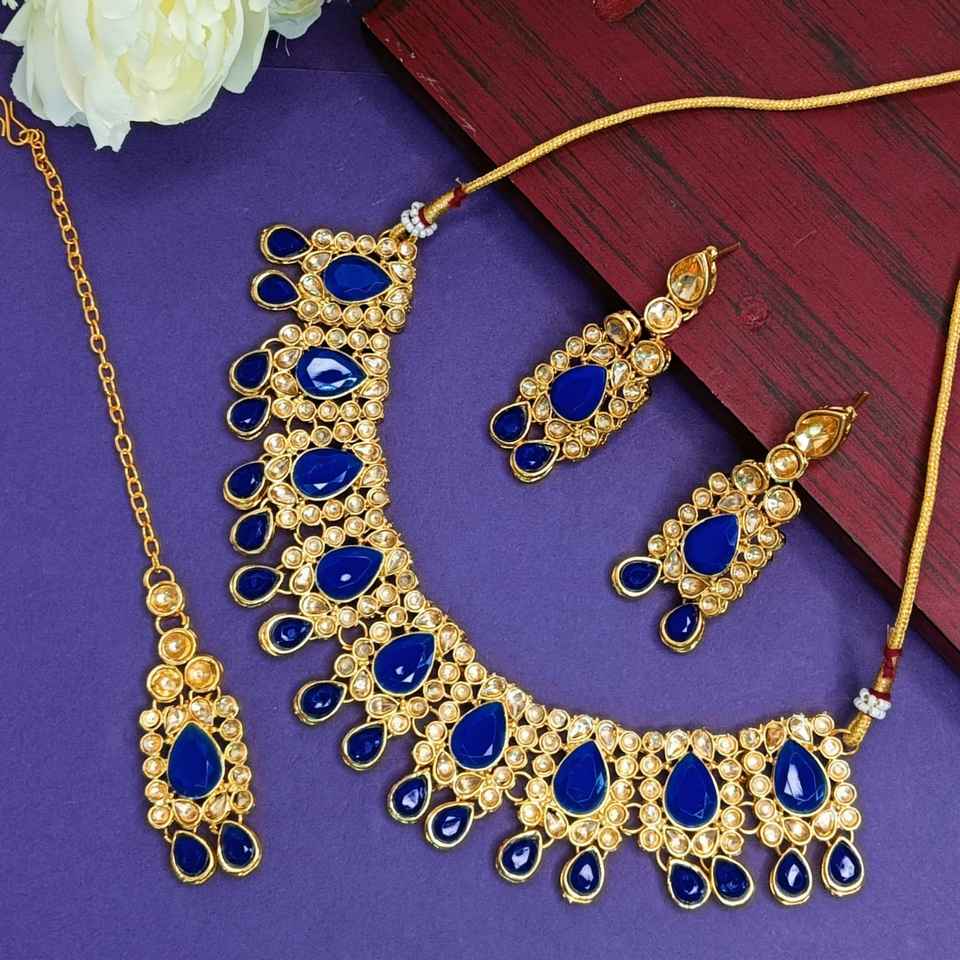 Indian Jewelry Kundan Crystal Choker Necklace Earrings Maang Tikka Head Chain Bollywood Wedding Bridal Set
