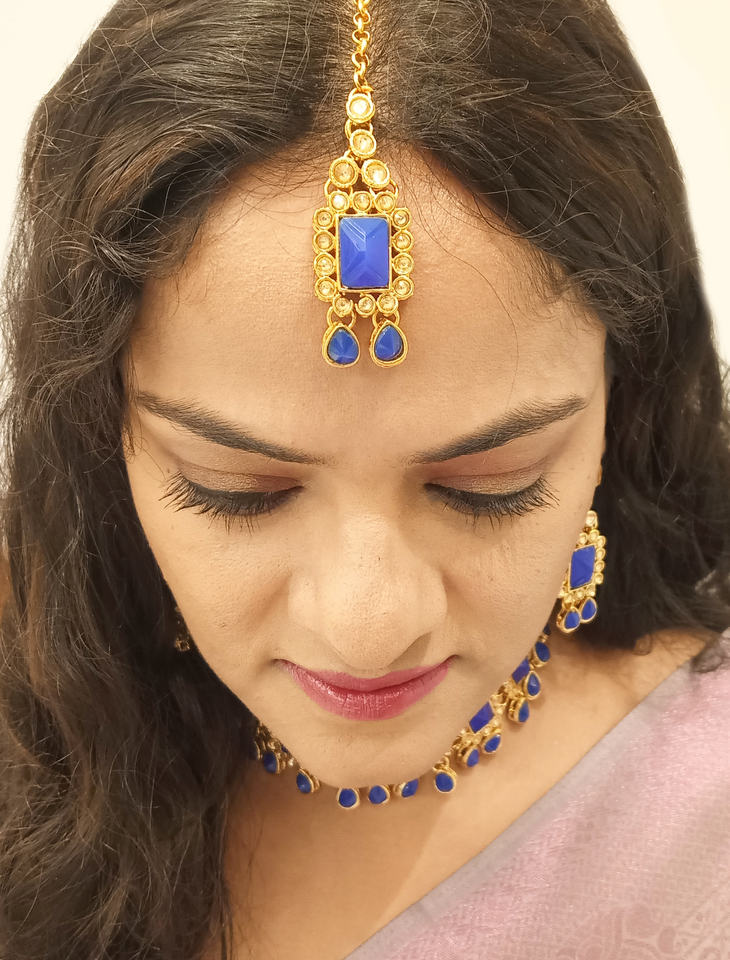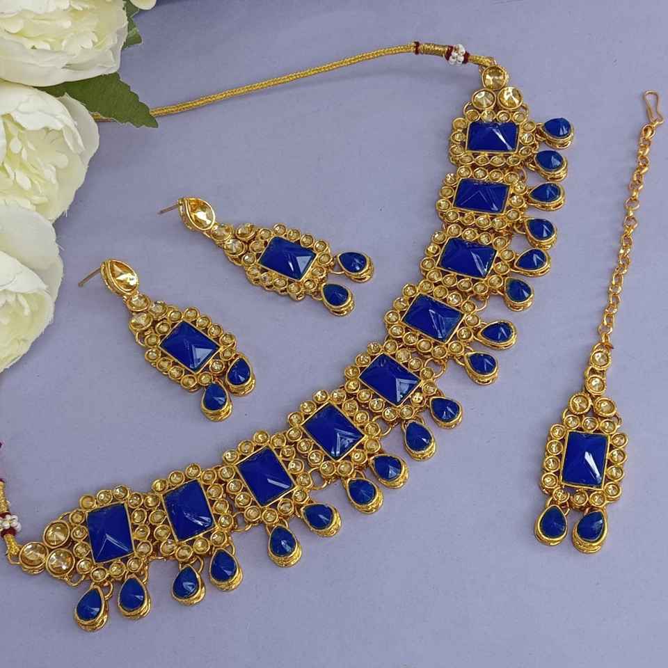 Indian Jewelry Kundan Crystal Choker Necklace Earrings Maang Tikka Head Chain Bollywood Wedding Bridal Set
