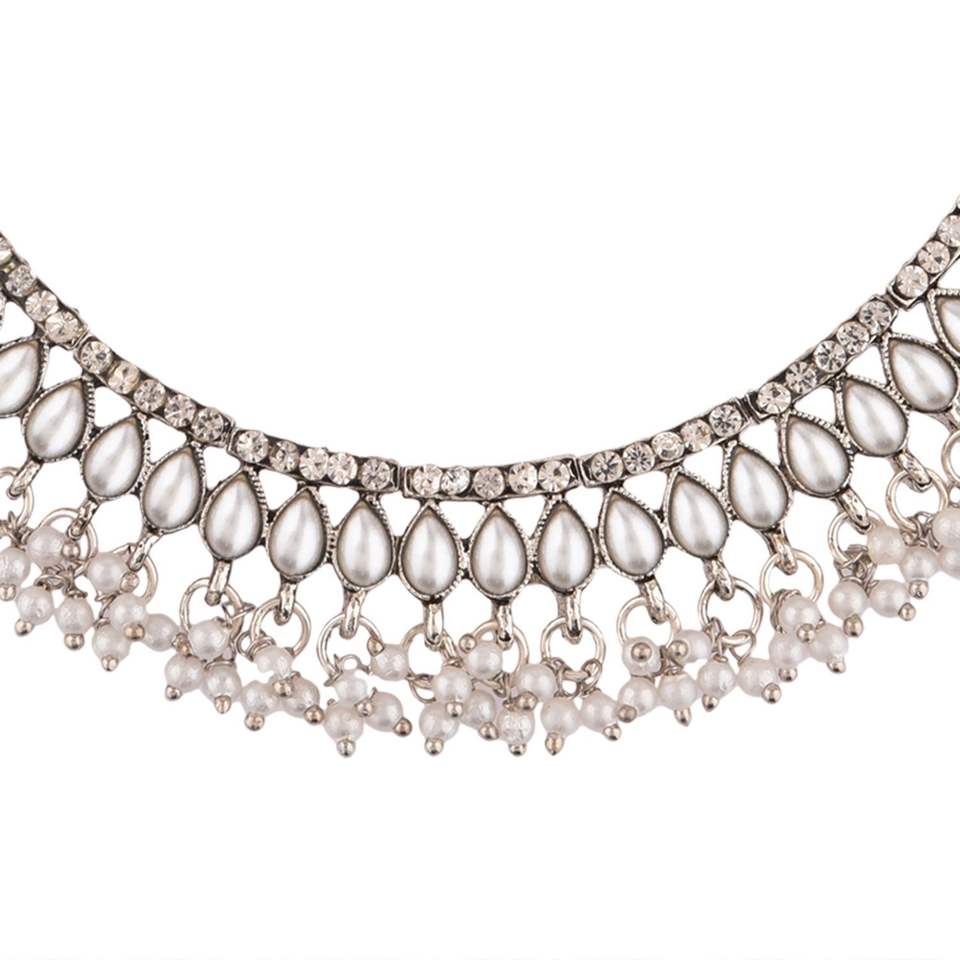 Indian Jewelry Oxidized Boho Vintage Antique Choker Multi Layer Chain Necklace Earrings Set for Women
