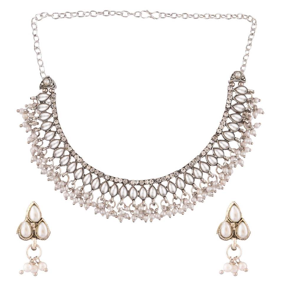 Classic antique silver tone choker necklace earring set