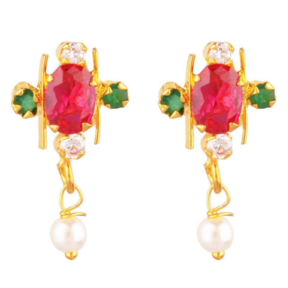 Indian Jewelry Set CZ Cubic Zirconia Faux Pearl Multicolor Layered Strand Beaded Choker Necklace Earrings Set