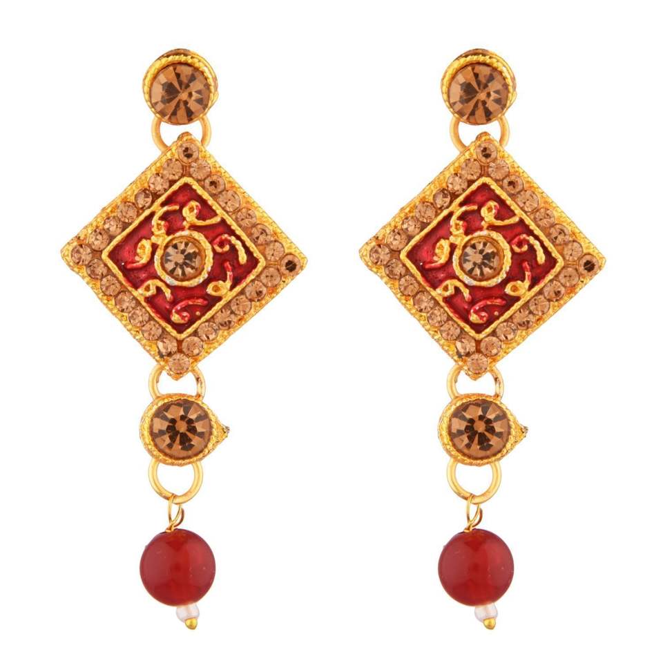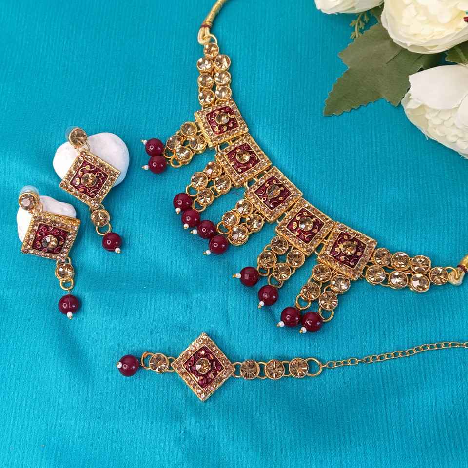 Indian Jewelry Set Enamel Crystal Pearl Drop Choker Necklace Dangle Drop Earrings Jewellery Set For Women, Maroon