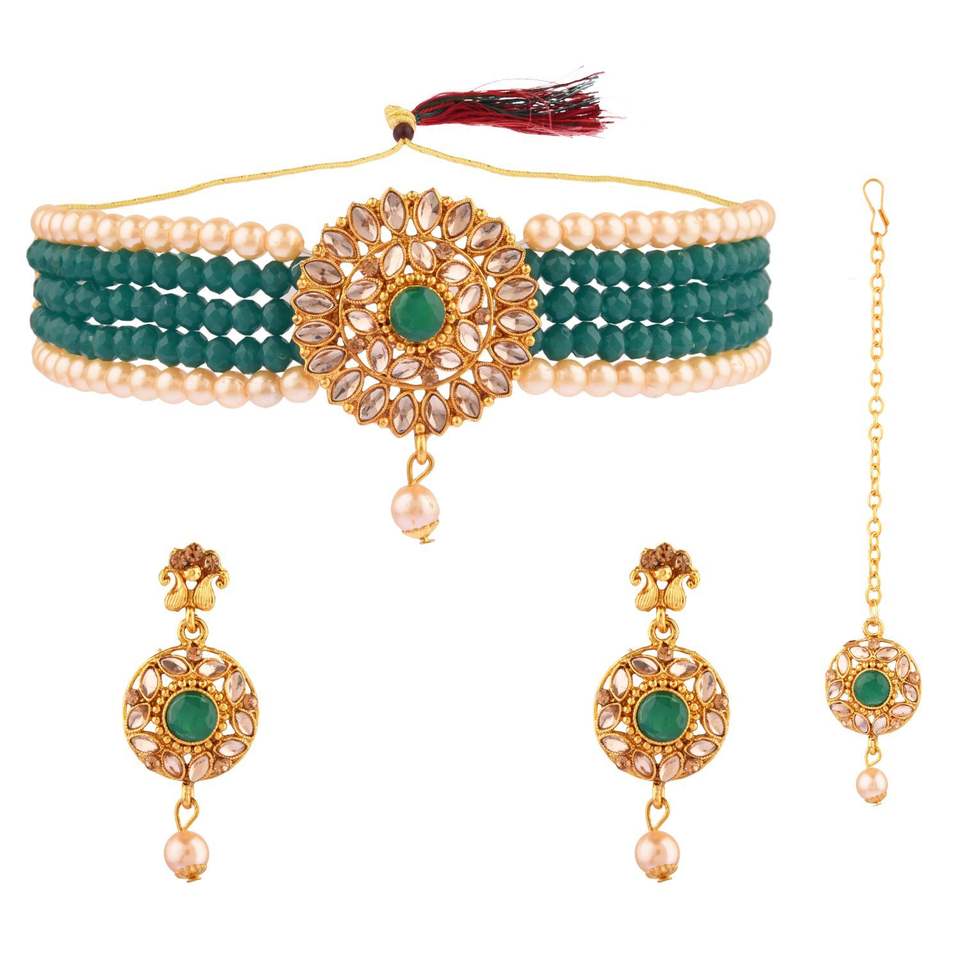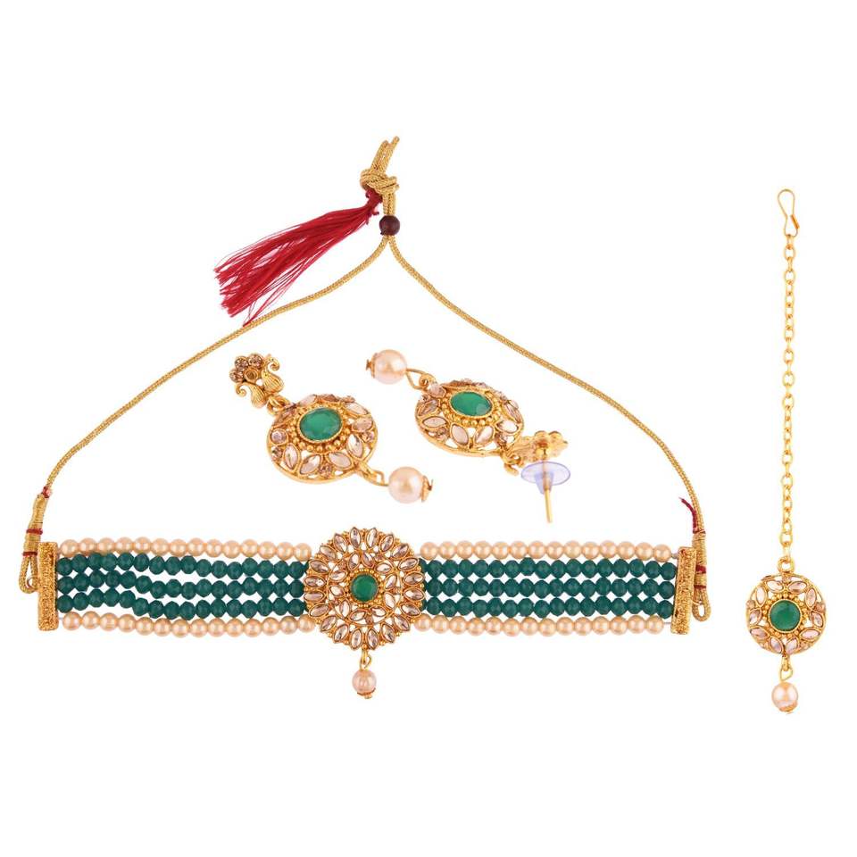 Design:Indian faux pearl beaded choker necklace set,