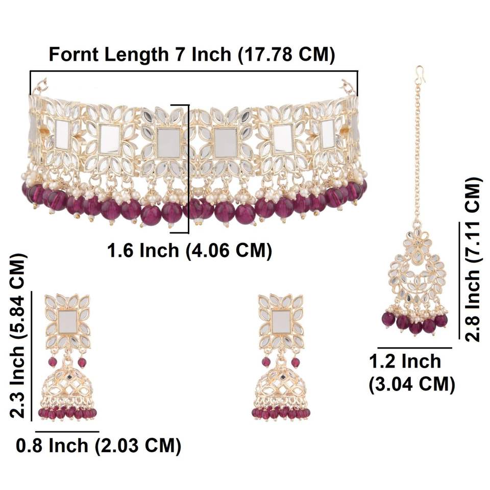 Indian Jewelry Set Glass Kundan Crystal Choker Necklace Jhumka Earrings with Maang Tikka Head Chain Wedding Jewelry for Women