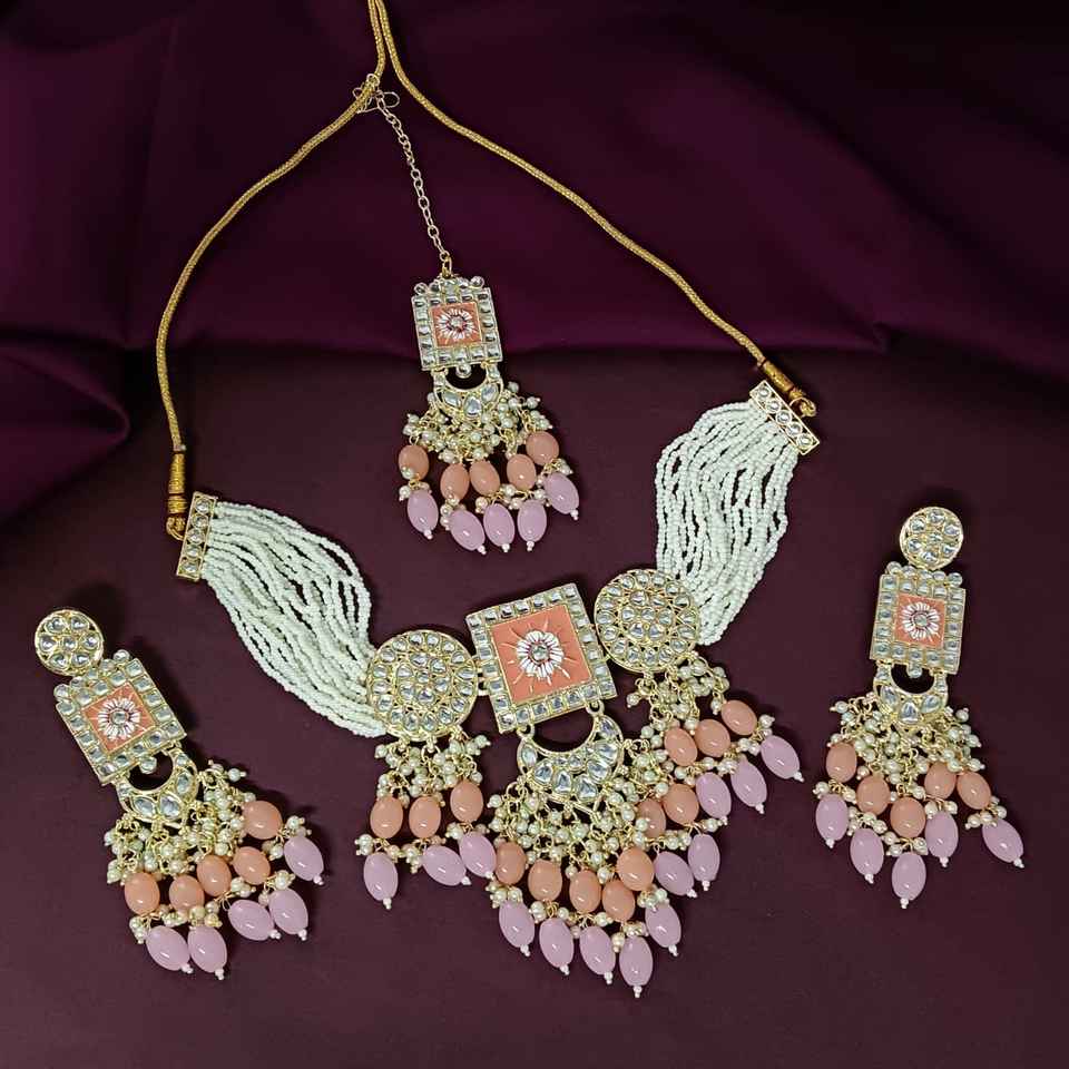 Indian Jewelry Set for Women High Quality Kundan Crystal Choker Necklace Dangle Earrings Maang Tikka Head Chain Fashion Jewelry