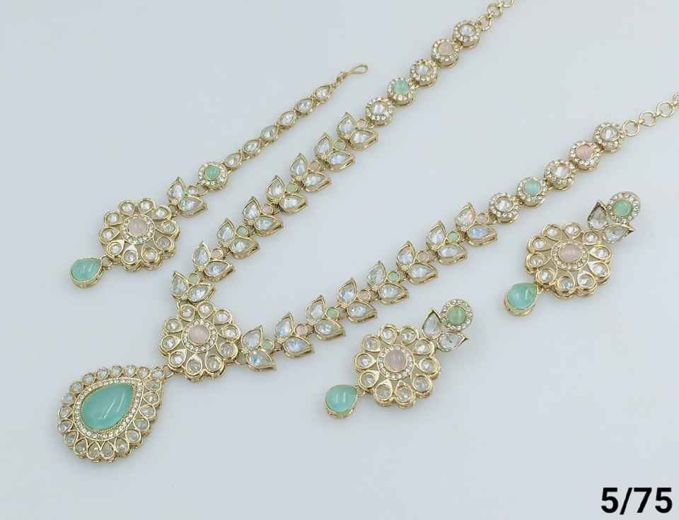 Indian Jewelry Traditional &Fashionable Gold Plated &Long Necklace With Earring and Maagtika Combo Necklace Set for Women