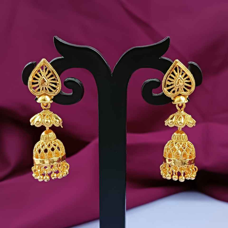 Design:Embellished with floral pattern three layer jhumka jhumki earrings