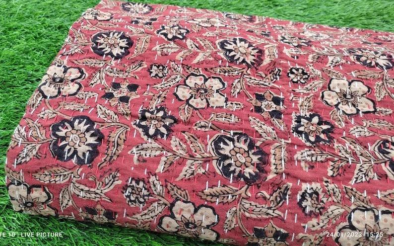 Indian Kantha Floral Quilt Bedspread Block Print Kantha Bedcover Throw Cotton Blanket Queen Size Light Weight Kantha Bedding