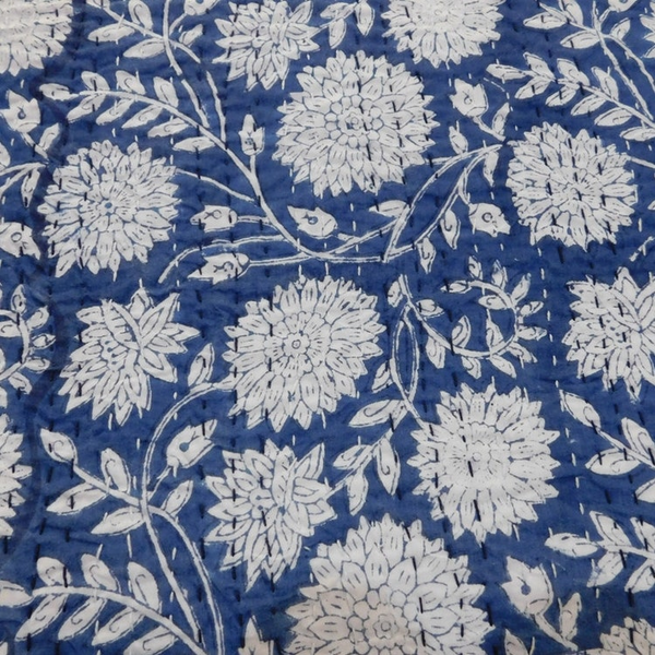 Indian Kantha Quilt Kantha Bed cover Blanket Indian New Floral Print Throw Gudari Cotton Twin