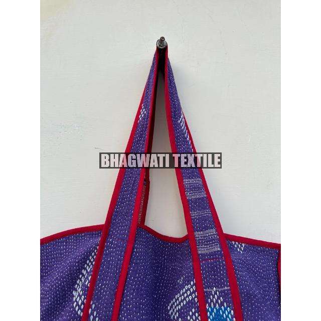 Indian Hand Block Printed Cotton Reversible Quilted Tote Shopping Bags Geometric Style Folding Beach Bags