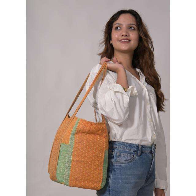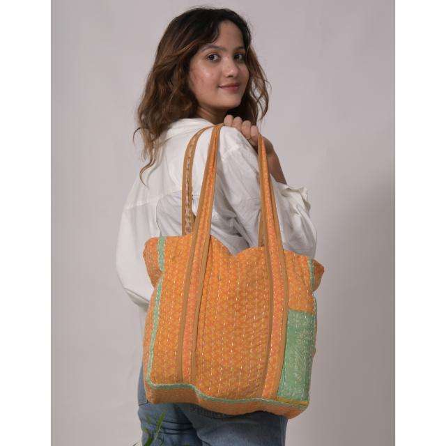 Indian Kantha Tote Bag Handmade Boho Cotton Shoulder Bag Multicolor Vintage Style Purse Womens Eco Friendly Shopping Bag