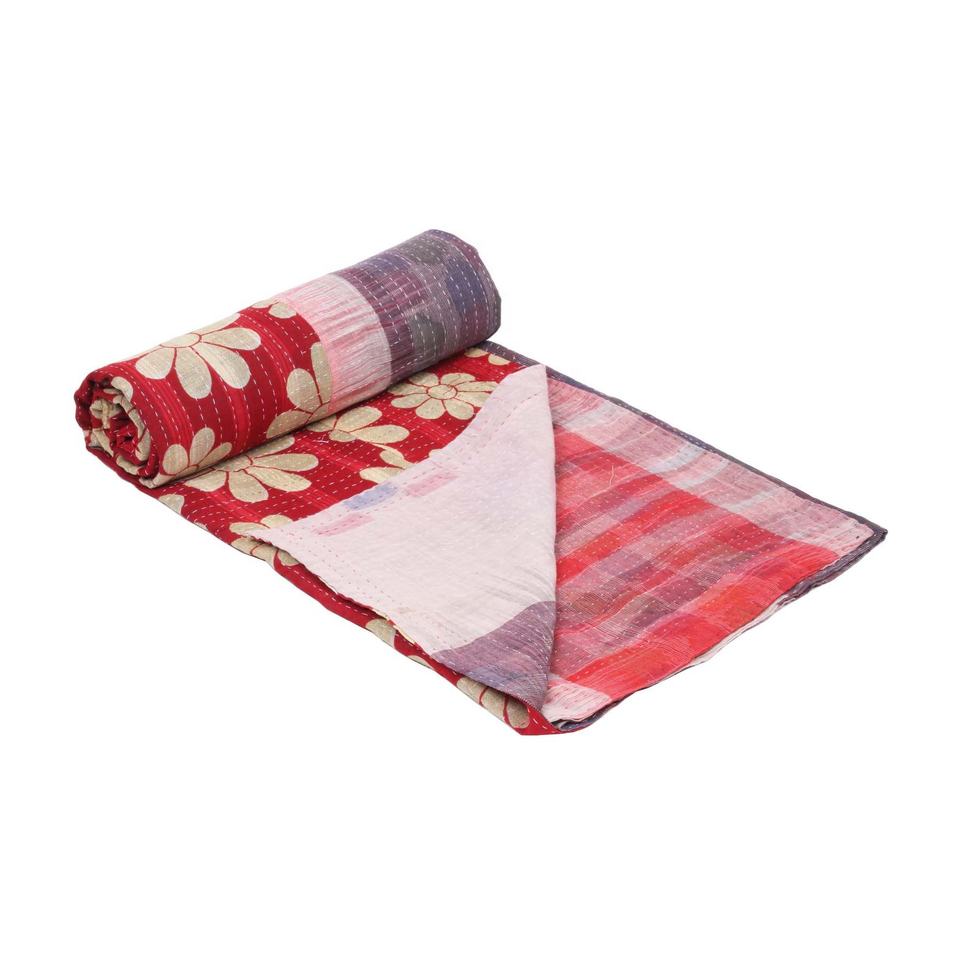 Indian Kantha Work Quilt Gudri Reversible Throw Cotton Printed Blanket Handmade Bedspread Bedding Indian Reversible Hand Stitch