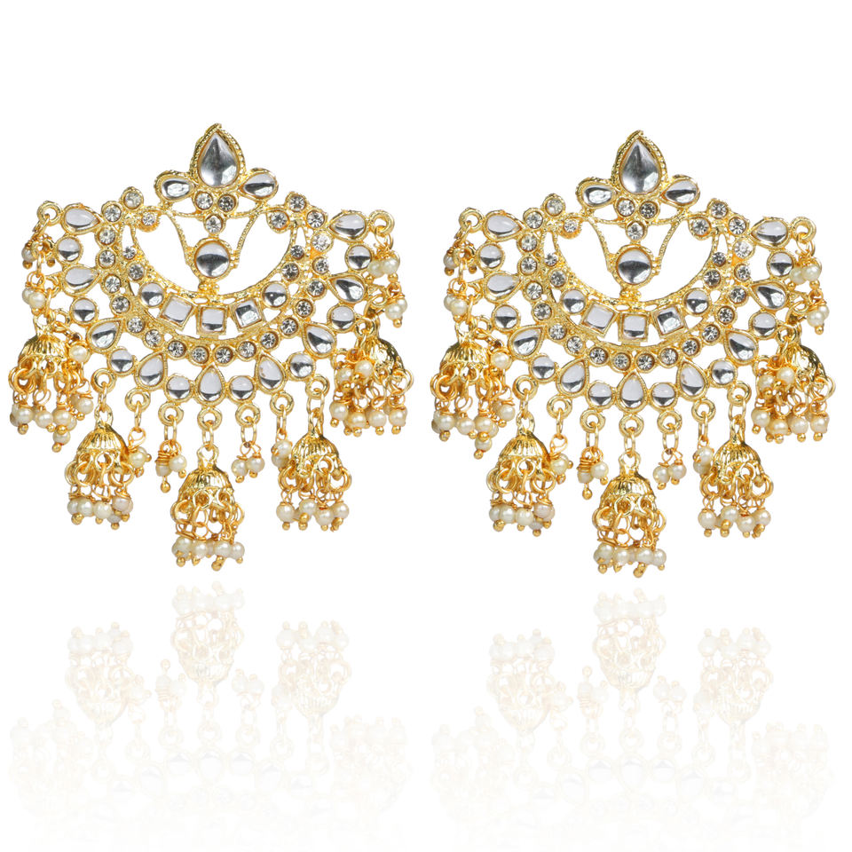 Indian Kundan Alloy Crystal Rhinestone Faux Pearl Bridal Trendy Wedding Drop Earrings Women Wholesale Fashion Jewelry Set Gift