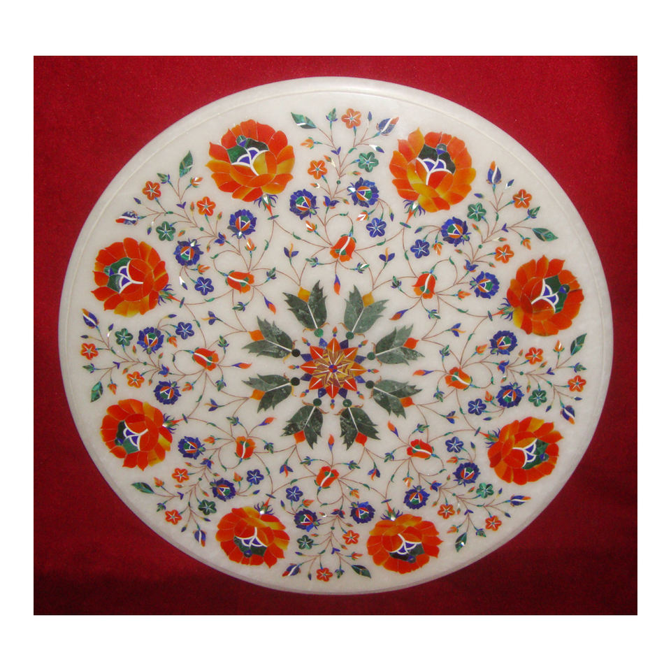 Indian Large Exporter White Marble With Natural Stone Inlay Table Top