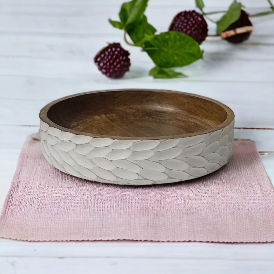 Indian Luxury Antique Mango Wood Salad Serving Bowl Spoon Set Hand-Carved Eco-Friendly Tabletop for Home Party Unique Farmhouse