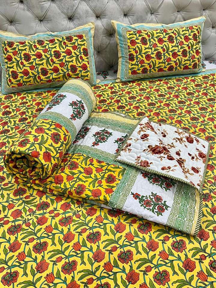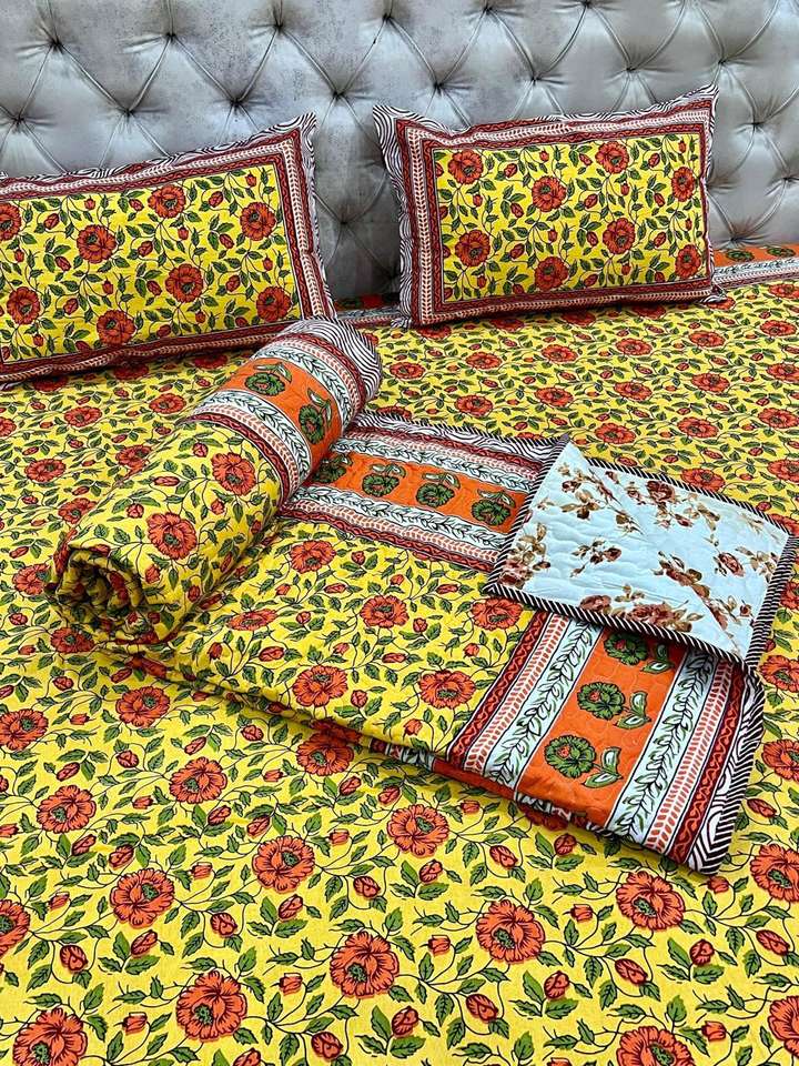Indian Luxury Hand Block Print Quilt Set Modern Style Pure Cotton Bedding with Fitted Flat Sheets for Home or Hotel