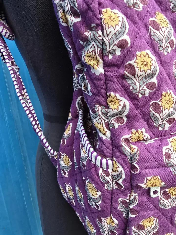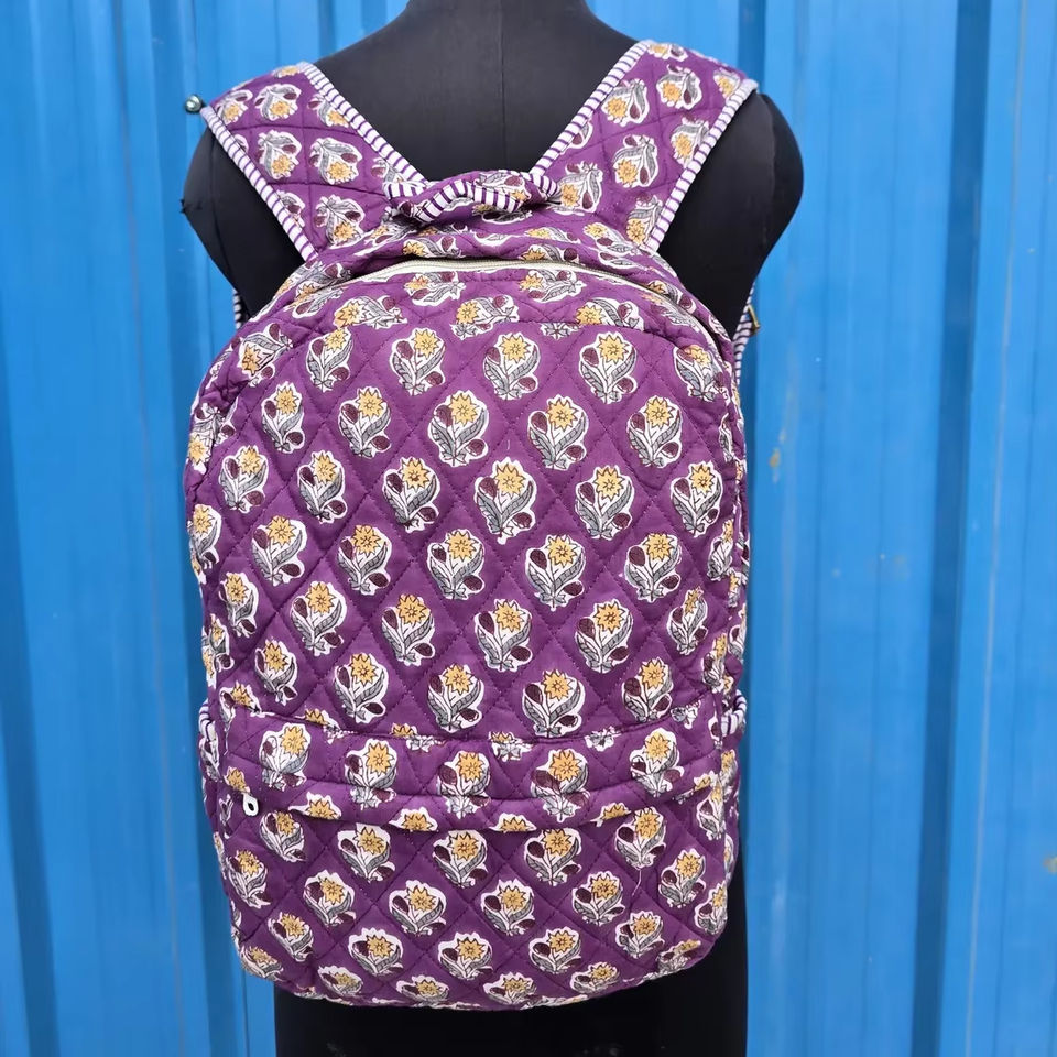 Indian Luxury Vintage Bohemian Cotton Block Print Quilted Durable Portable Foldable Lightweight Zipper Closure Women's Backpack