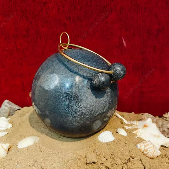 Indian Luxury dark grey Resin Sphere Clutch Handbag with Brass Ring Handle Evening Party Wedding Women Clutch handbag