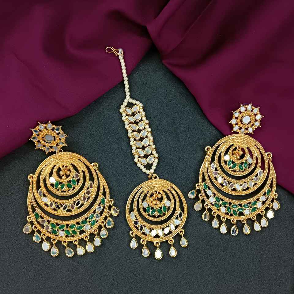 Feature:Embellished with glass stones, faux pearl dangle maang tikka earrings,