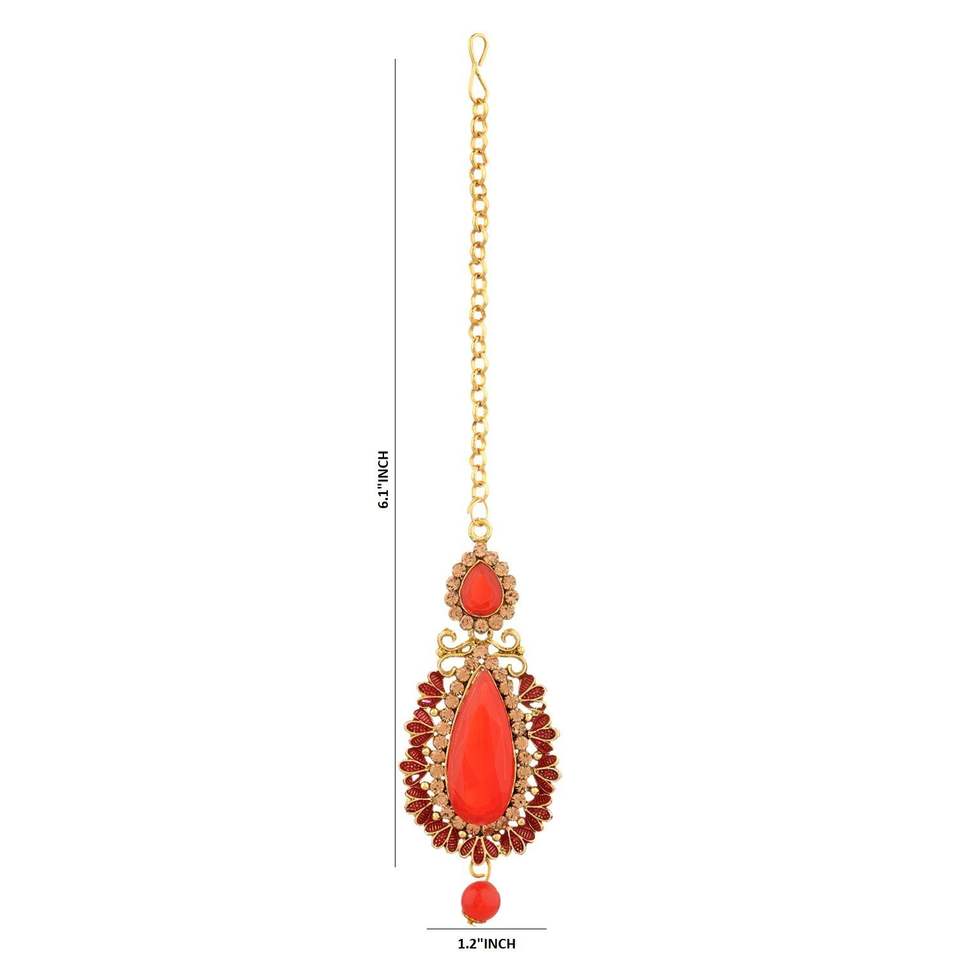 Maang Tikka: L X W: 6.1" x 1.2", Earrings: L x W: 3" x 1.2"