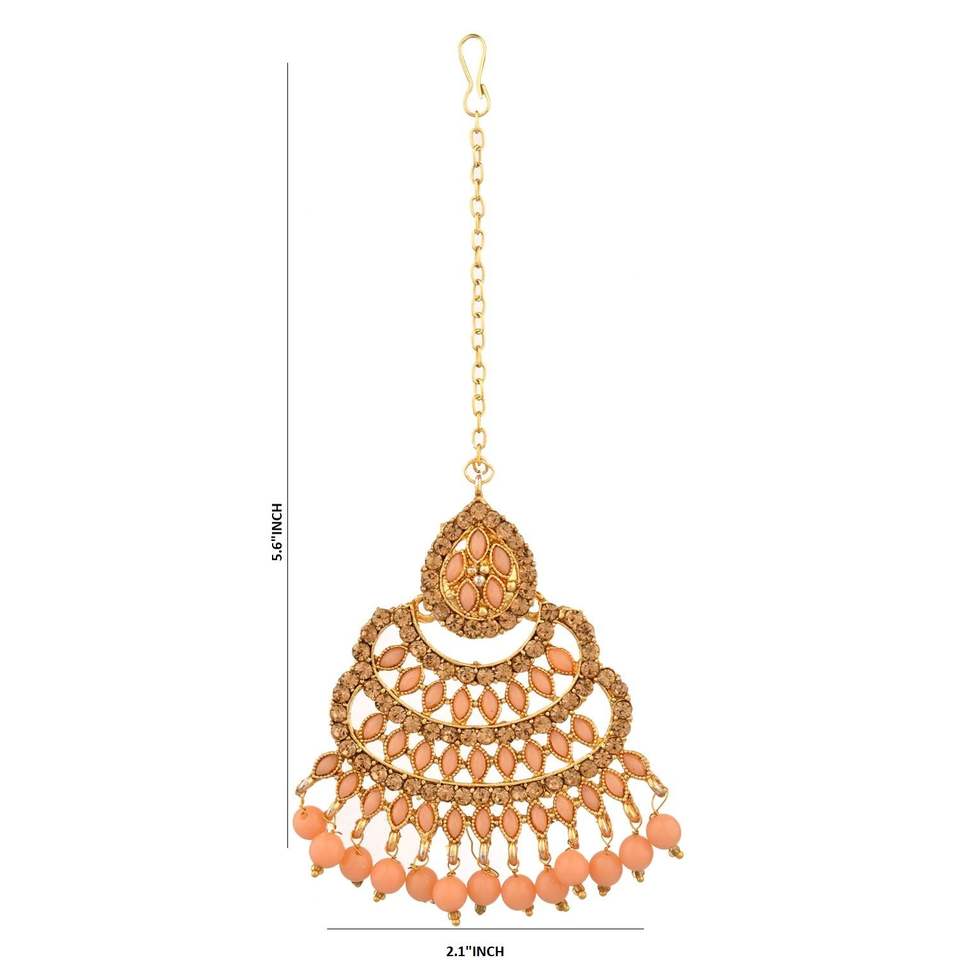 Maang Tikka: L X W: 5.6"x 2.1", Earrings: L x W: 3" x 2.1"