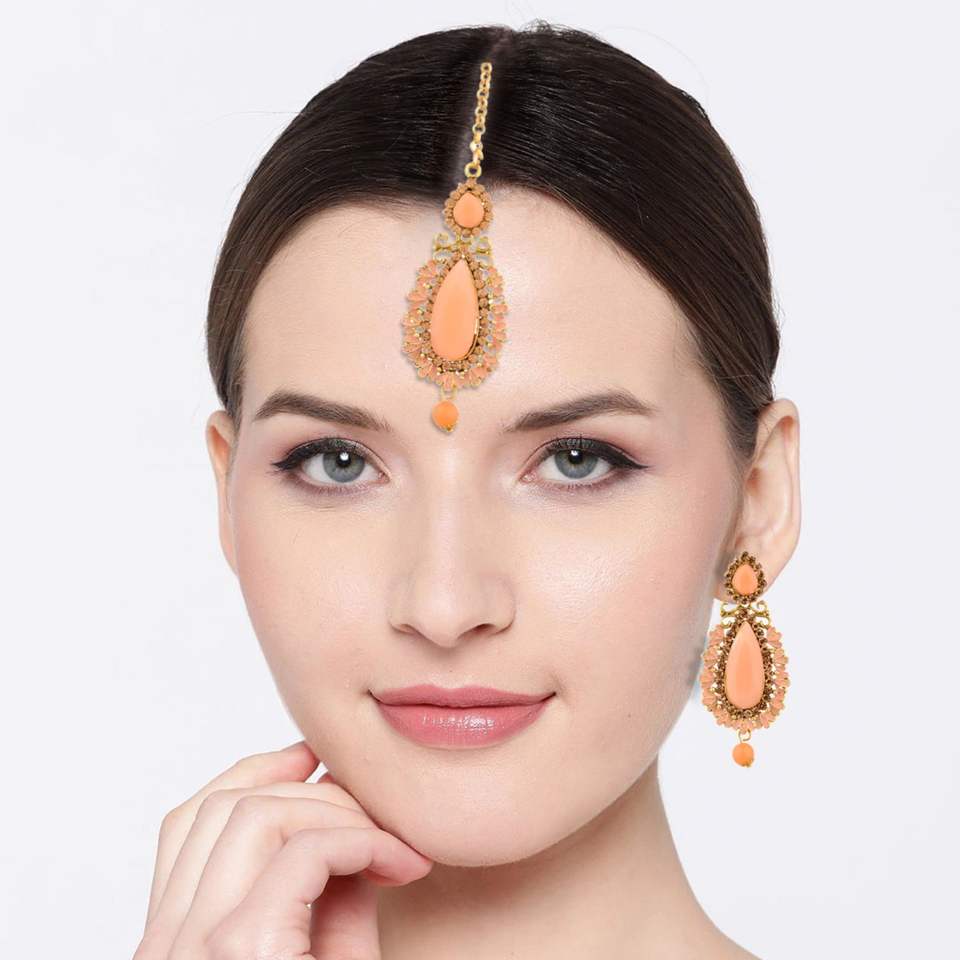 Set include:1 Maang Tikka, 1 Pair Of Earrings