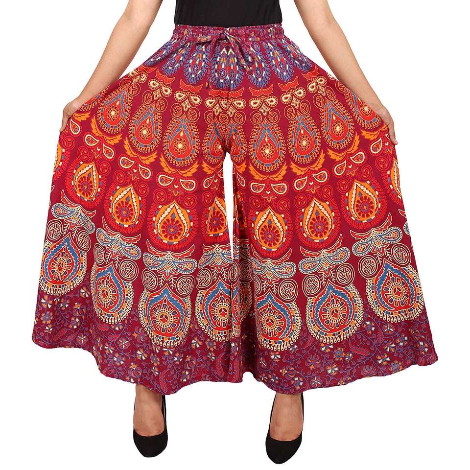 Indian Mandala Print Palazzo Pant Cotton Wide Leg Tribal Harem Style Palazzo Gypsy Hippie Bohemian Pants Palazzo Trousers Animal