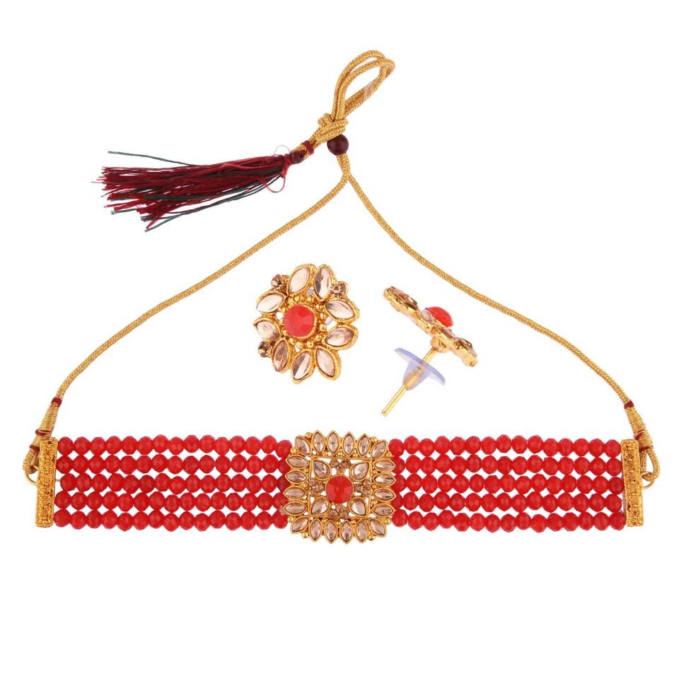 Design:Indian faux pearl beaded choker necklace set,