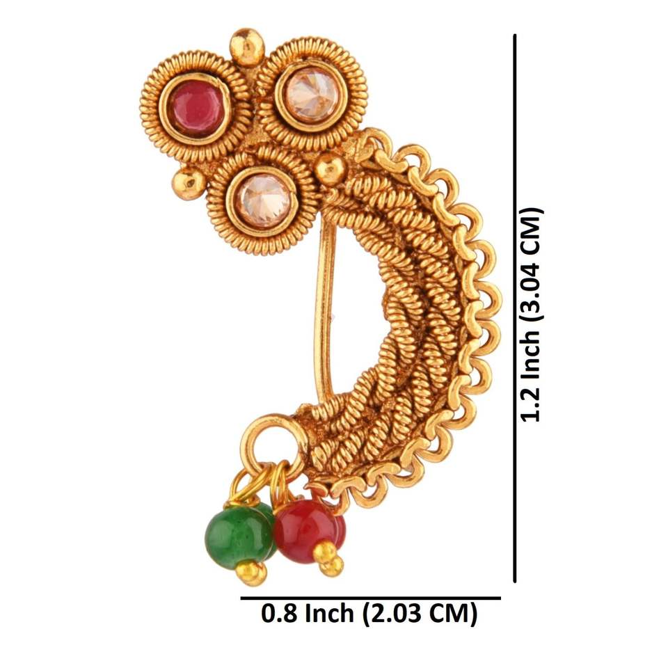 Indian Manufacture Jewellery Faux Pearl Drop Floral Bridal Crystal Wedding Traditional Nath Nathani Clip On Jewelry Set, Multi