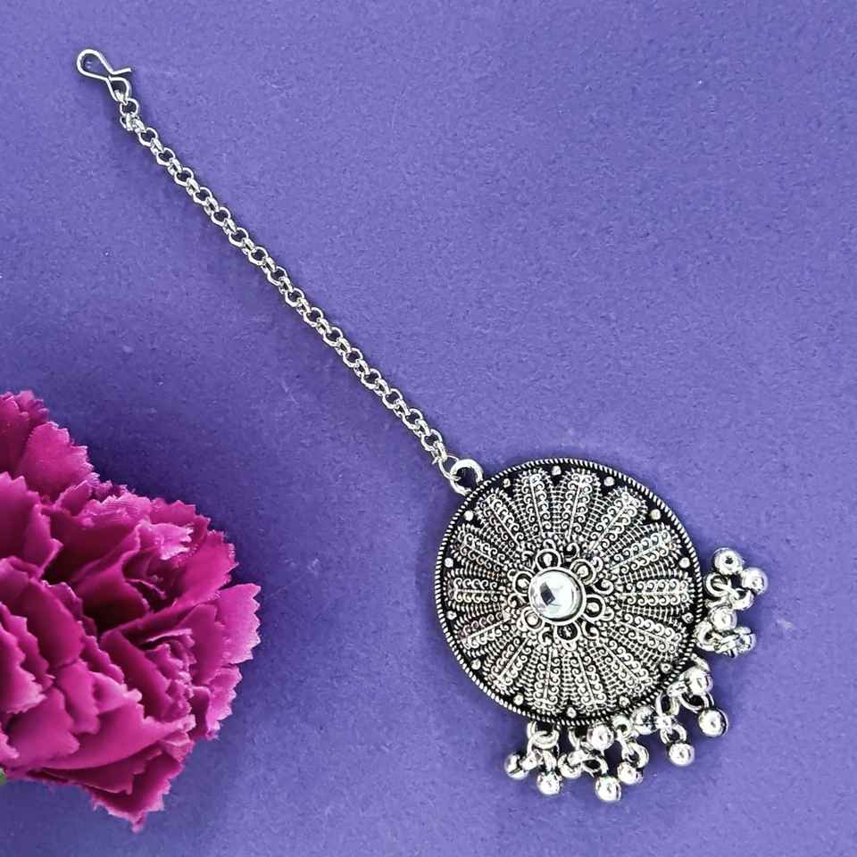 Elegant oxidized silver tone Indian Jewelry Manng Tikka