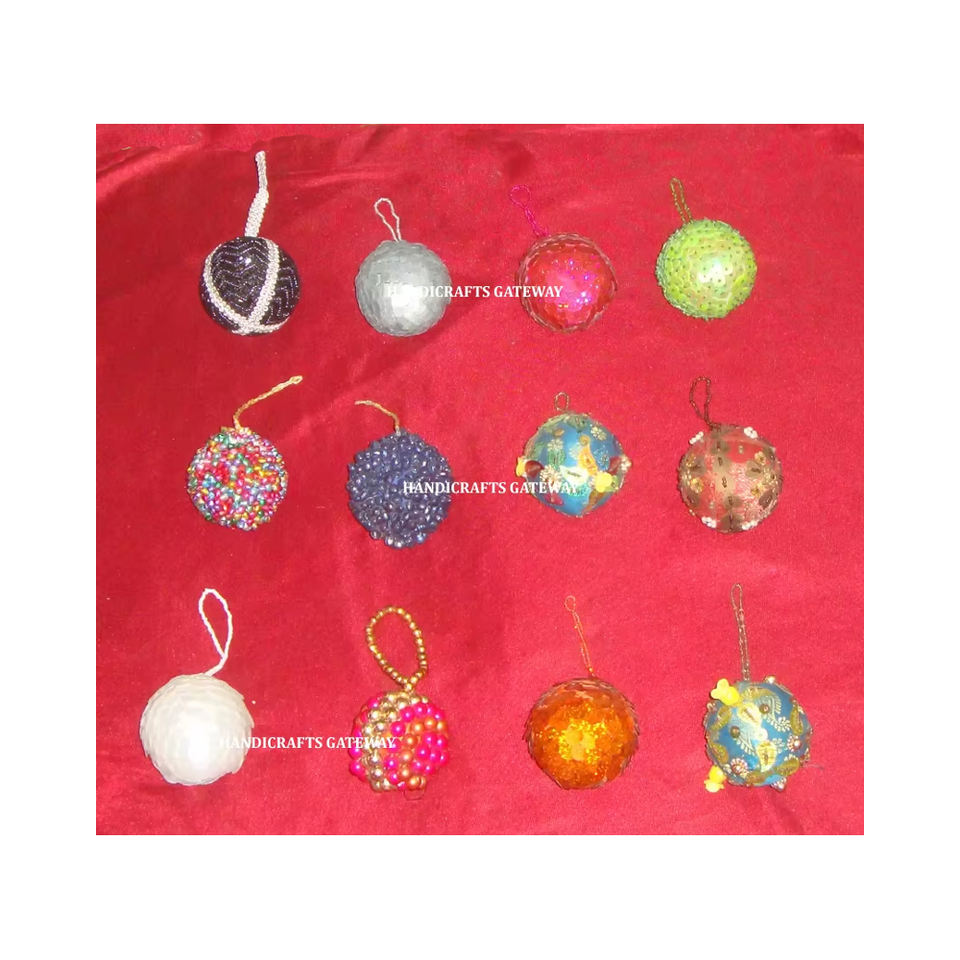 Indian Manufacture Of Assorted Designs Handmade Zari Embroidery With Beaded Work For Christmas Tree Decorate Hanging Ornaments