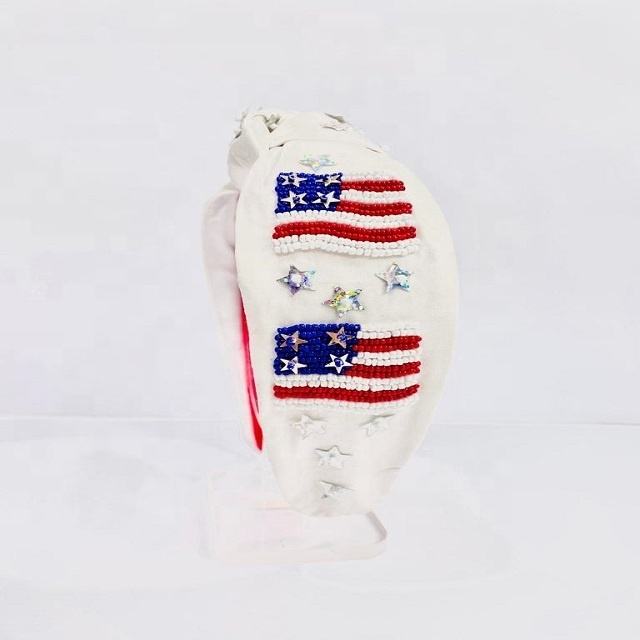 Indian Manufactured 4th July Sequin Beaded Hairband U.S.A National Day Knotted Hair Accessory Headband